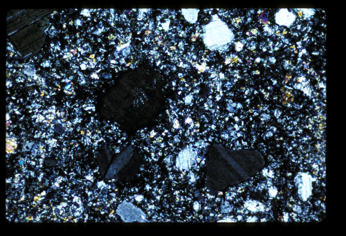 15459 | 3 | Apollo 15 / 7 | Same as 9 closer. Note crushed basalt-gabbro in the A3 + the whole is a clast in dark very fine granoblastic hornfels matrix | 2.2 | 15 | Wilshire | ap1503_01_06 |