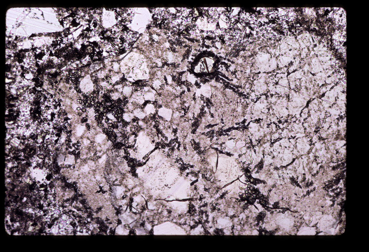 67015 | 76 | Apollo 16 / 11 | Granoblastic-polygonal homfels clast in D1 (=selvage?)- single orthopyroxene in hornfels breaking down | 10x | 13 | Wilshire | ap1603_13_13 |