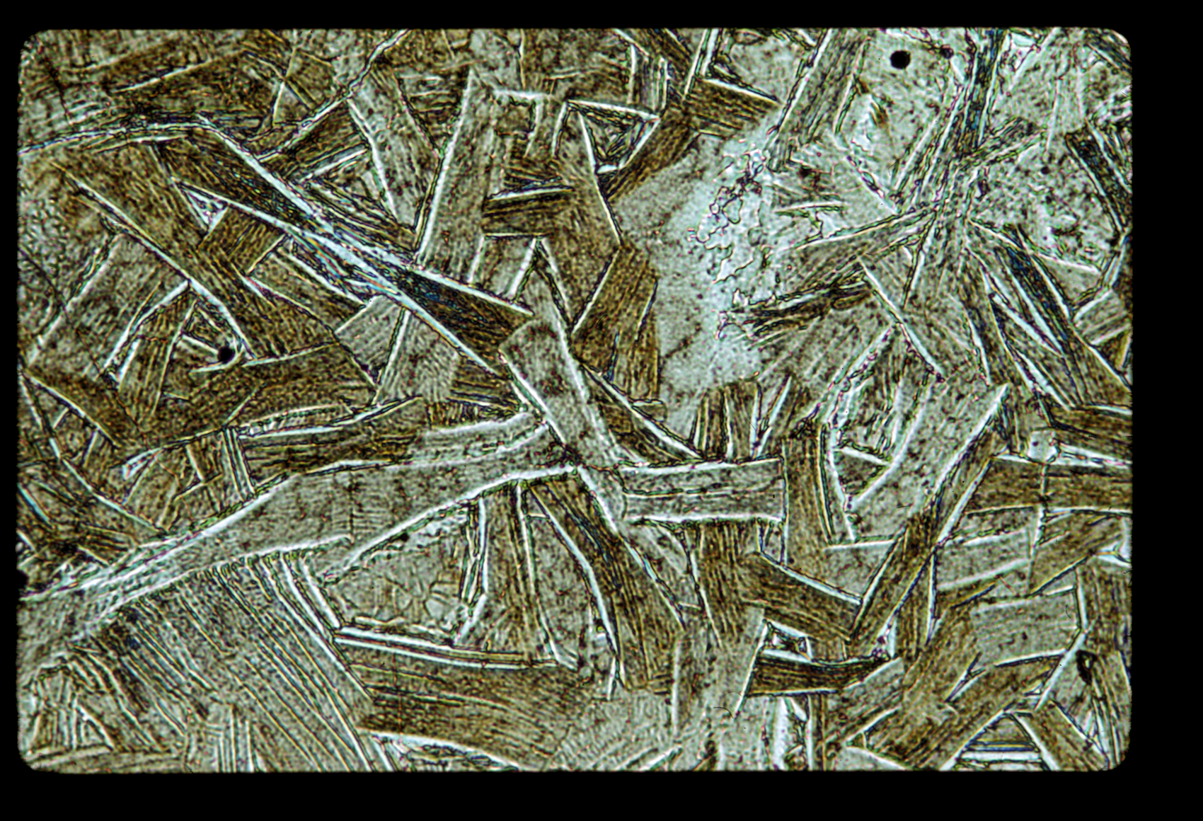 67948 | 15 | Apollo 16 / 11 | UXN Another view, clinopyroxene? ophitic enclosing plagioclase | 2.7 | 27 | Wilshire | ap1603_08_08 |