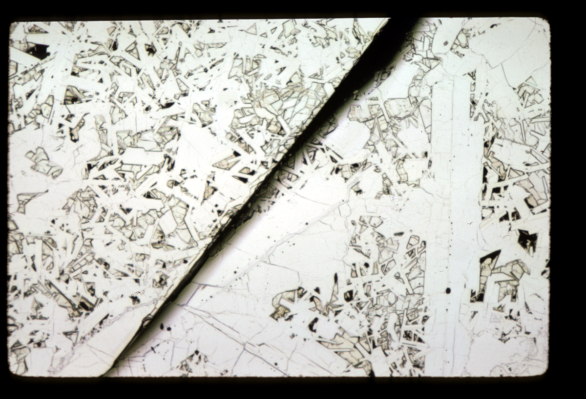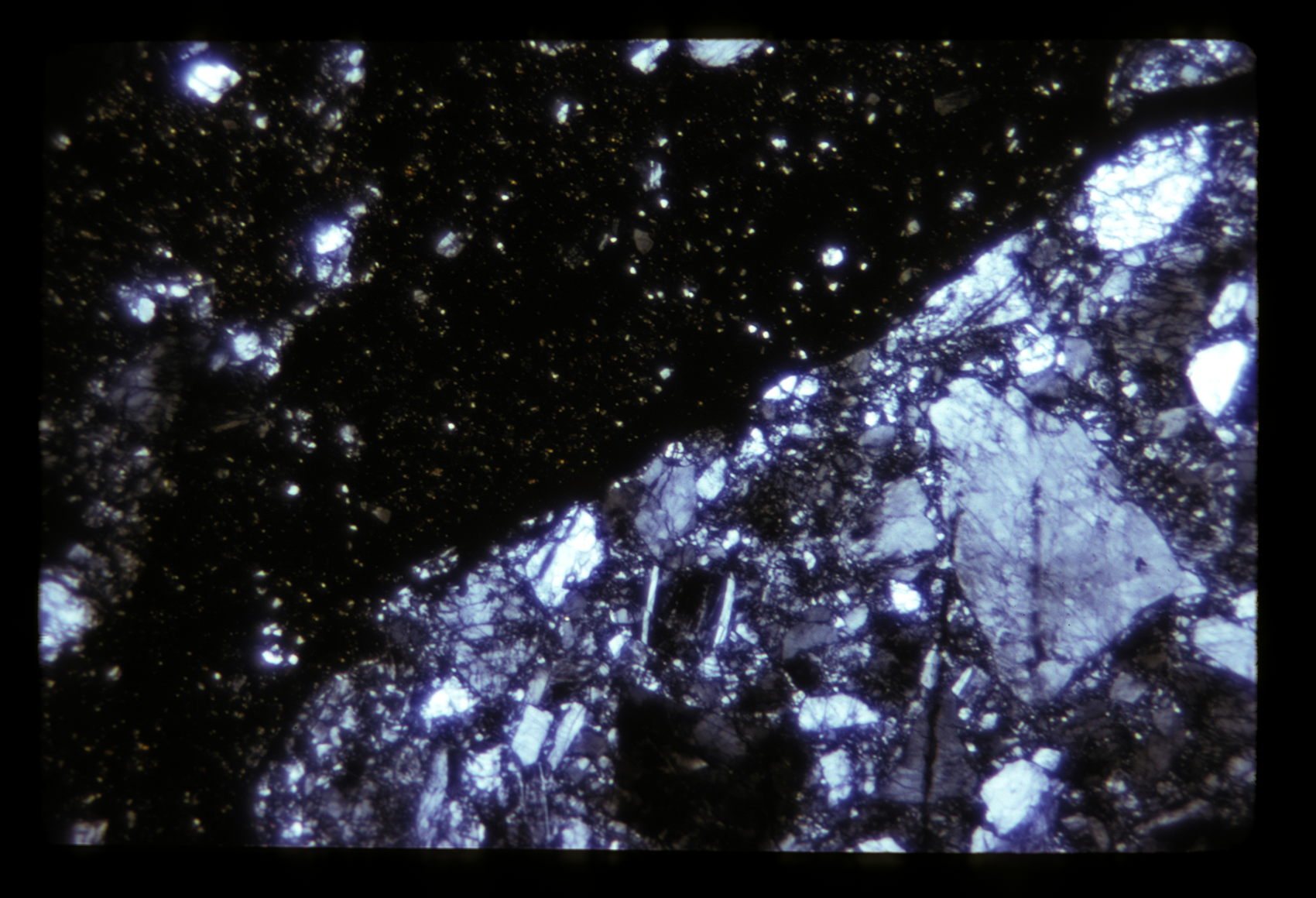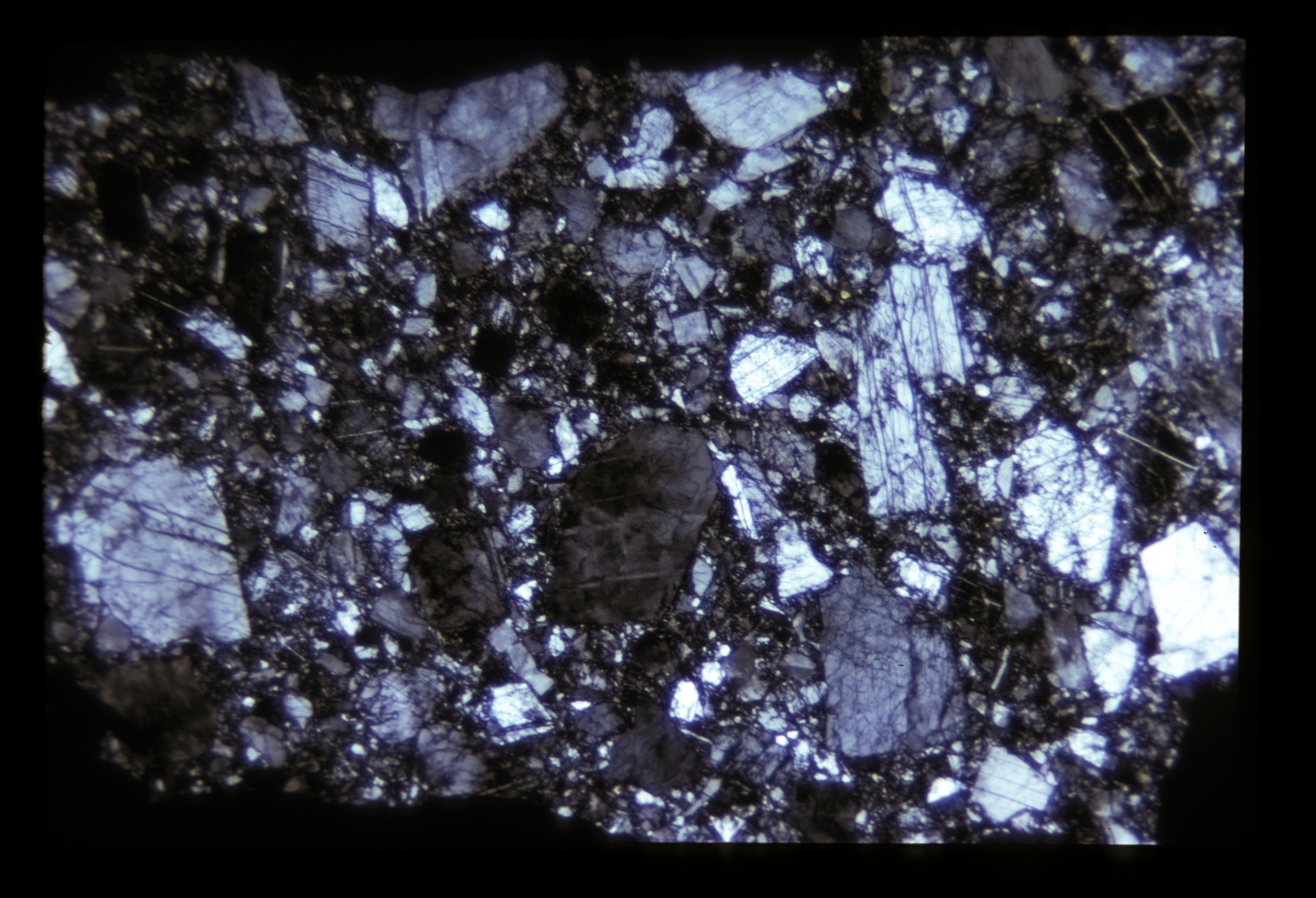 65035 | 6 | Apollo 16 / 5 | cataclastic anorthosite intersertal matrix and later glass view | 3.3 | 26 | Wilshire | ap1606_02_06 |