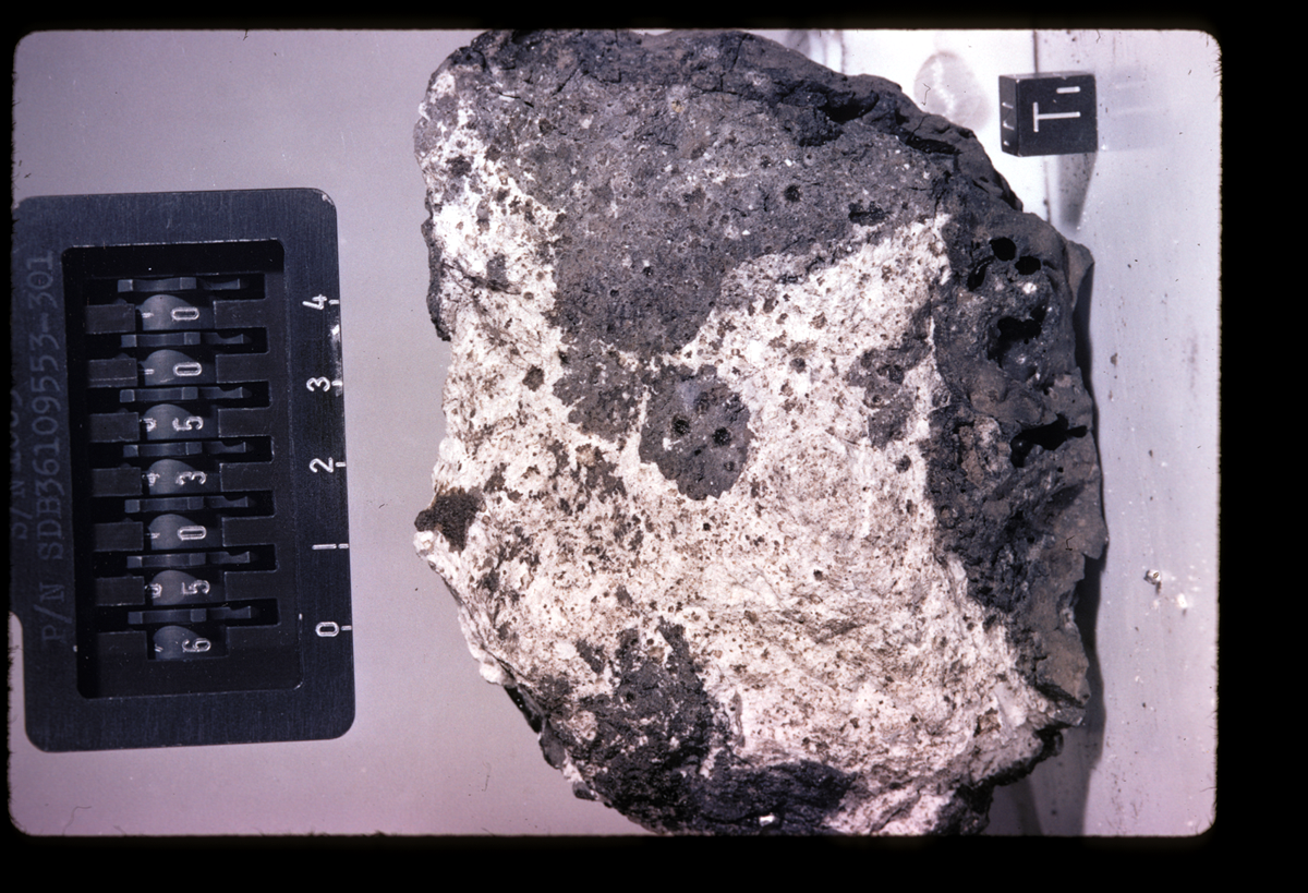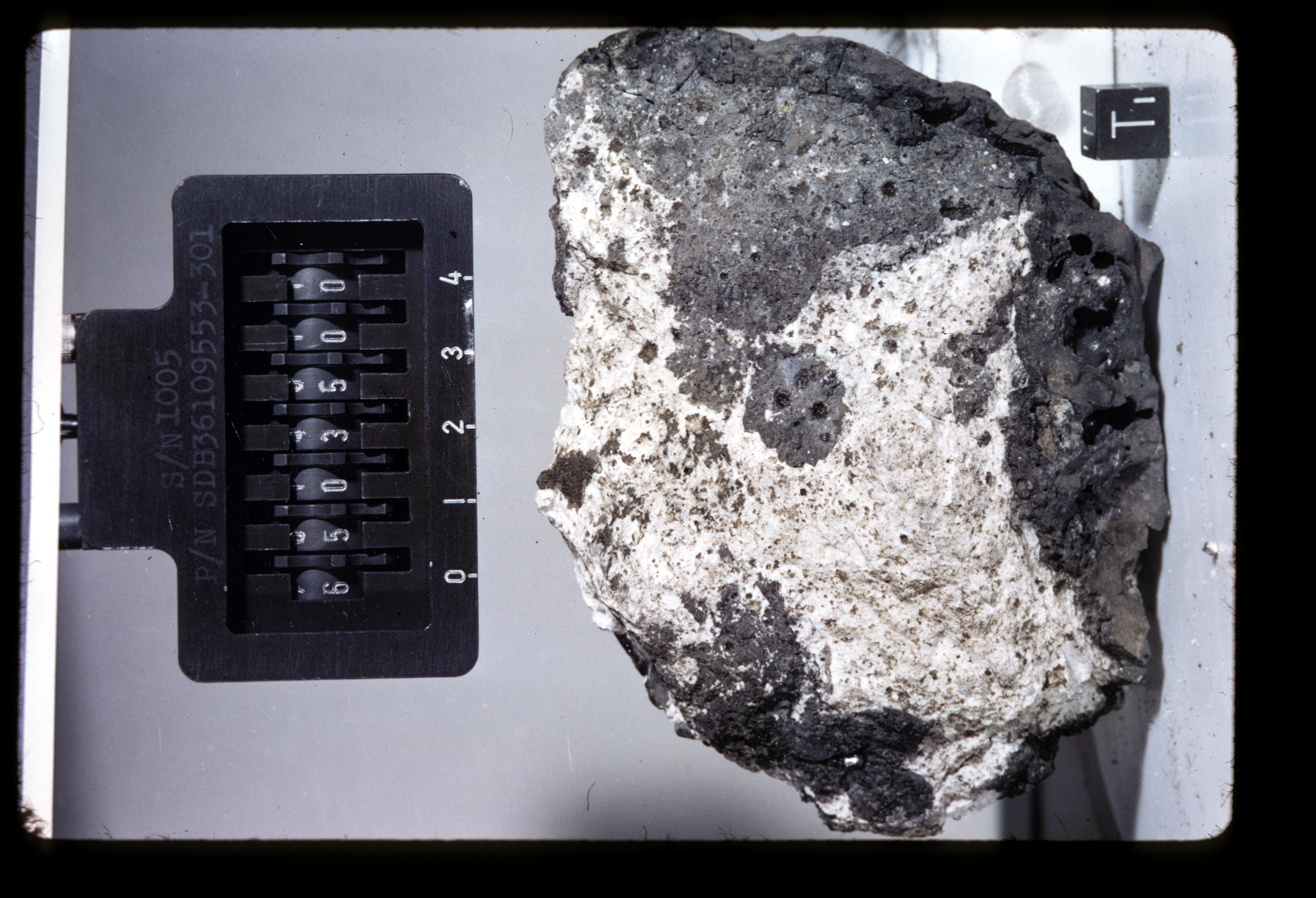 65035 | 6 | Apollo 16 / 5 | melt matrix, anorthosite, younger glass vein | 3.4 | 10 | Wilshire | ap1605_11_09 |