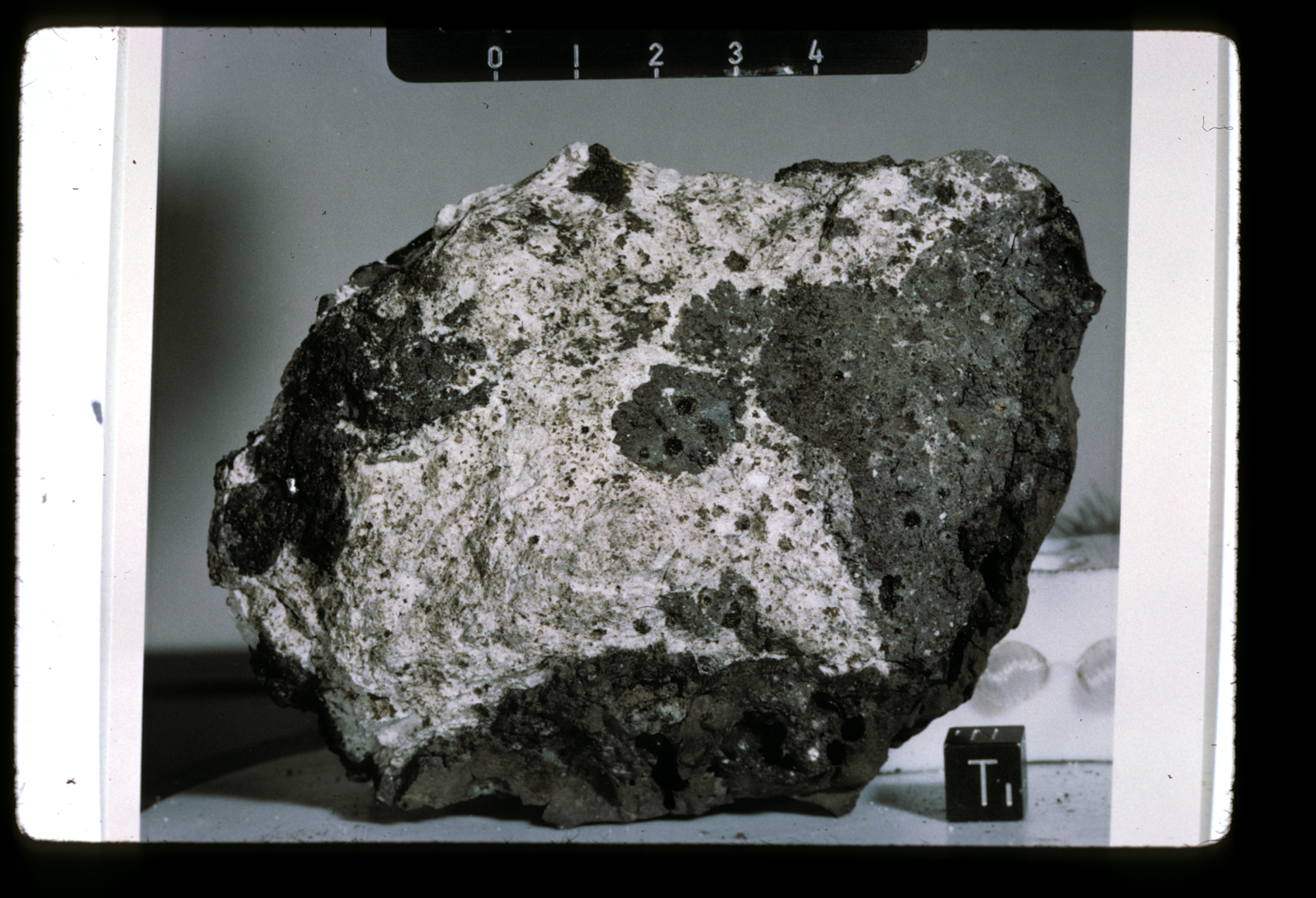65035 | 7 | Apollo 16 / 5 | Cataclastic anorthosite note rod pyroxenes upper right | 3.3 | 20 | Wilshire | ap1606_02_01 |