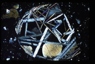 | Comments: | Broken sphere with olive prisms, feldspar + colorless glass | |