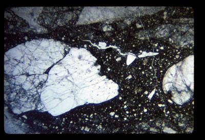 | Comments: | Vein + 2 small clasts - left is shattered "anorthosite" is spherulite recrystallized plagioclase | |