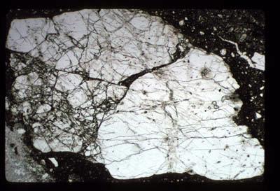 | Comments: | Shattered "anorthosite" clast. Note inclusion pyroxene inclusions in plagioclase | |