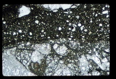 | Comments: | Norite - vein contact - flow sorting removed mineral clasts from center area = dulled ?" | |