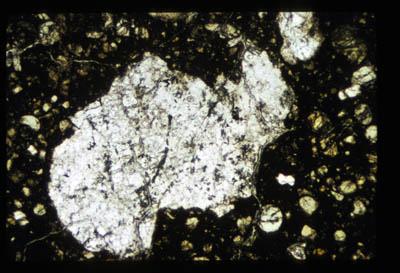 | Comments: | Finely recrystallized plagioclase, pyroxene, + delicate opaques in anorthosite clast | |