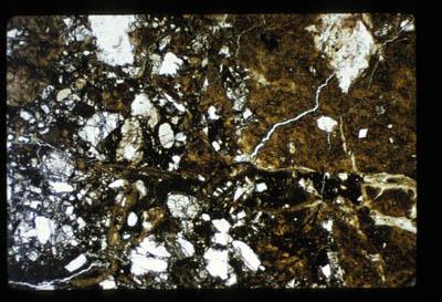 | Comments: | Nearly same view as 36 - light yellow glass vein crossing clasts + matrix | |