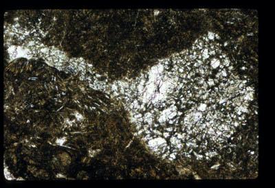 | Comments: | Crushed basalt-gabbro clast - mafics to pseudotachy-like texture, stretched; weakly recrystallized | |
