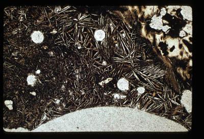 | Comments: | Breccia matrix along one of scarce vesicles. Note cavities in pyroxene-c zones | |