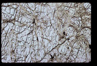 | Comments: | Odd lacework with higher birefringence in orthopyroxene with thin exsolved lamellae crushed zones? | |