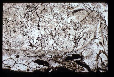 | Comments: | Relict plagioclase in partly melted (brown) devitrified plagioclase + recrystallized plagioclase with cataclastic flow structure | |