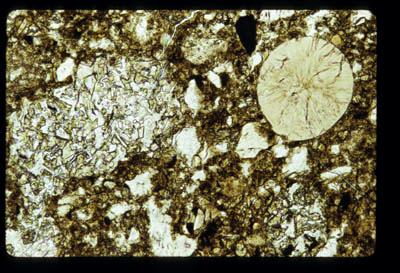 | Comments: | Poikiloblastic clasts + devitrified glass sphere | |