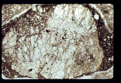 | Comments: | Brown devitrified glass clast enclosing cataclastic plagioclase with band of polygonal plagioclase | |