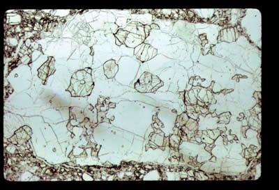 | Comments: | Granoblastic polygonal clast with round olivine enclosed in interstitial orthopyroxeme? with exsolved? wormy texture | |