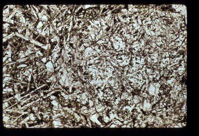 | Comments: | Small plagioclase clast, partly melted + crystallized to laths (some irregular relicts) in ophitic matrix | |