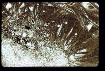 | Comments: | Metaclast. anorthosite on patchy crystallized melt zone; local fusion in rock --> intersertal texture | |
