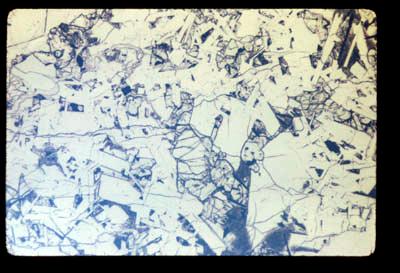 | Comments: | general texture olivine? mantled by orthopyroxene? interstitial ilmenite laths + glass | |
