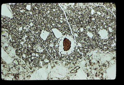 | Comments: | Spinel with feldspar reaction rim. spinel not at opaque. Rim has granoblastic texture | |