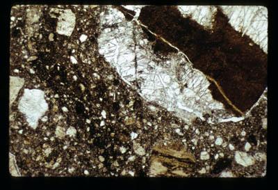 | Comments: | Plagioclase cataclastic clast with devitrified glass vein + fragments of vein. Near percussion cone in [illegible] breccia? - rebroken | |