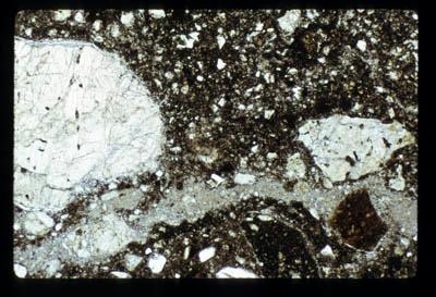 | Comments: | Devitrified brown glass fragment in ot. cataclastic vein through finely pulverized fine grained homfels | |